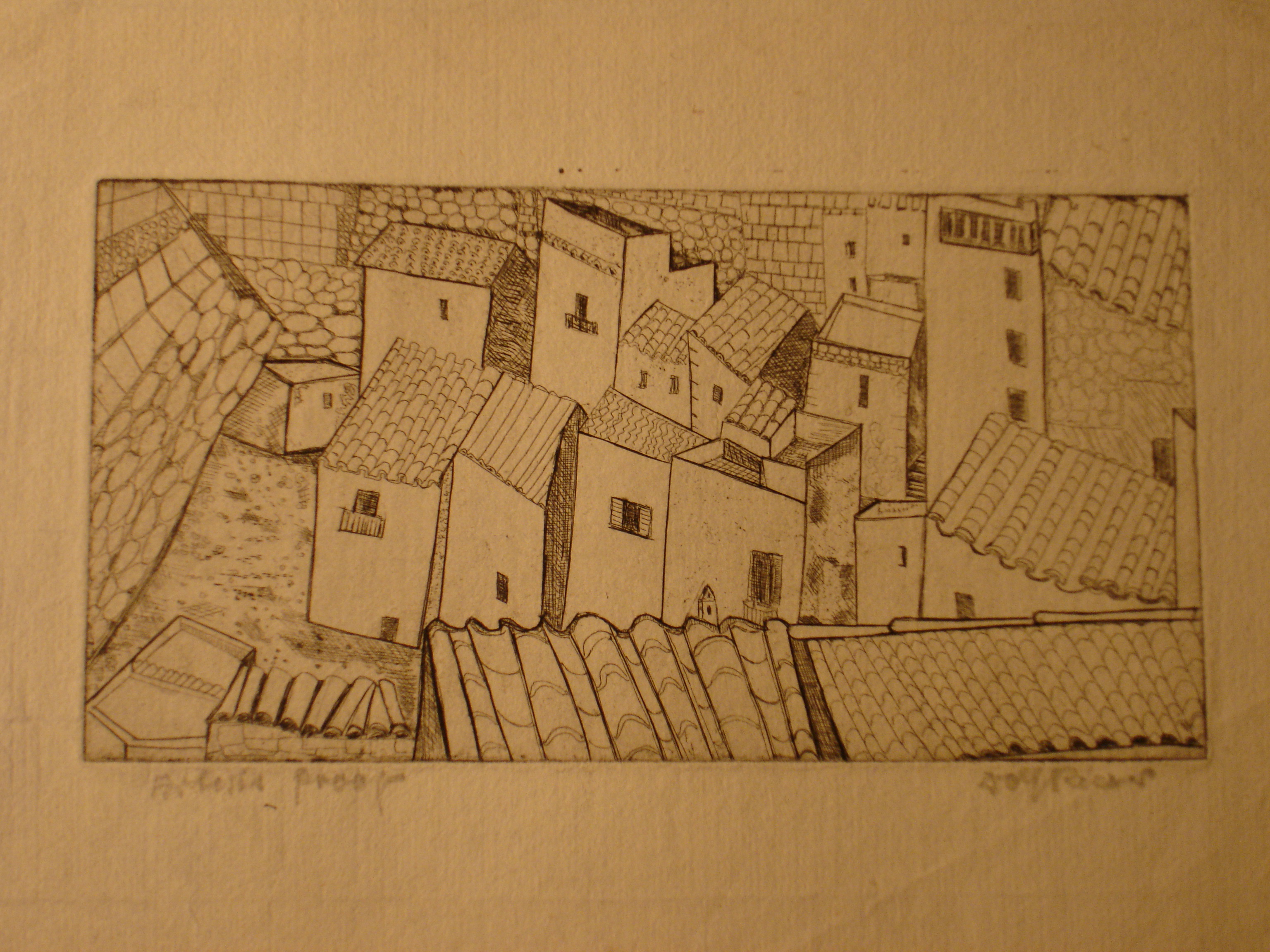 Spanish Roofs-etching 1930s